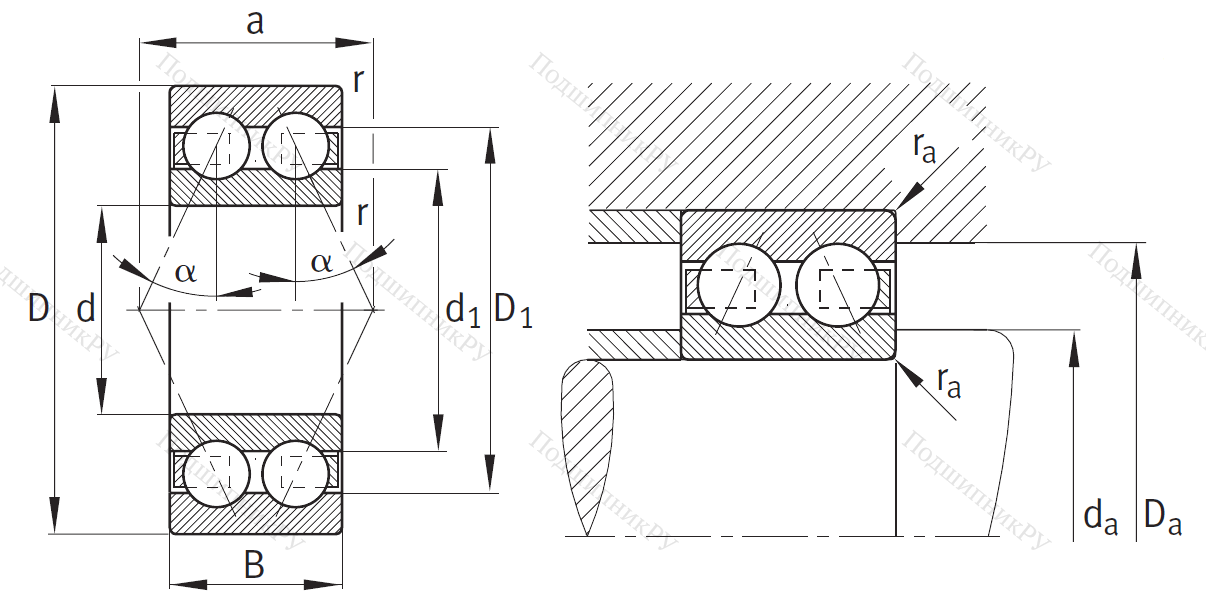 - В отличие от однорядных вариантов, может эксплуатироваться при значительно больших нагрузках радиального и осевого вектора.