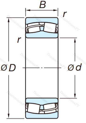 Сферический роликовый подшипник 21308 RZW33, представляет разновидность сферических роликоподшипников. В зависимости от типа может иметь один или два ряда тел качения в форме бочкообразных роликов. Однорядный имеет следующее конструктивное исполнение: массивная внешняя обойма, внутреннее кольцо, сепаратор, ролики. В зависимости от типа может иметь обоймы без бортов или с бортами. Является неразъёмным.