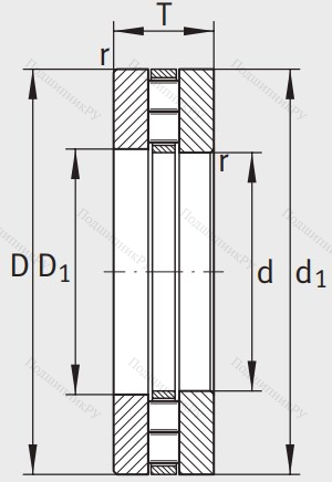 - Обладает более широкой зоной передачи усилий в сравнении с шарикоподшипниковыми аналогами, однако предназначен исключительно для работы с малыми скоростями вращения.