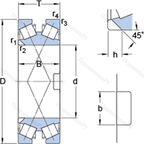 Двухрядные конические роликоподшипники конфигурации TDI 332068 у которого конструкционной особенностью являются ролики в форме конуса и разъемный корпус. Изделие также может быть укомплектовано наружным кольцом с упорным бортиком или большим углом, двухрядными или четырехрядными роликоподшипниками, утолщенной внешней шиной.