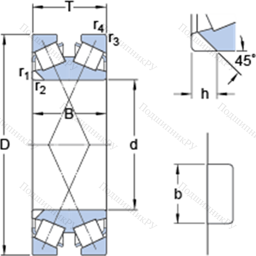 Двухрядные конические роликоподшипники конфигурации TDI 332171 у которого конструкционной особенностью являются ролики в форме конуса и разъемный корпус. Изделие также может быть укомплектовано наружным кольцом с упорным бортиком или большим углом, двухрядными или четырехрядными роликоподшипниками, утолщенной внешней шиной.
