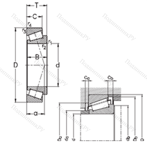 Какие свойства характерны для Подшипник роликовый радиально-упорный T2EE040?