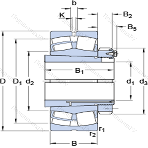 Сферические роликоподшипники на закрепительной втулке 23184 CKJ/W33 + OH 3184 H у которого конструкционной особенностью являются ролики в форме конуса и разъемный корпус. Изделие также может быть укомплектовано наружным кольцом с упорным бортиком или большим углом, двухрядными или четырехрядными роликоподшипниками, утолщенной внешней шиной.