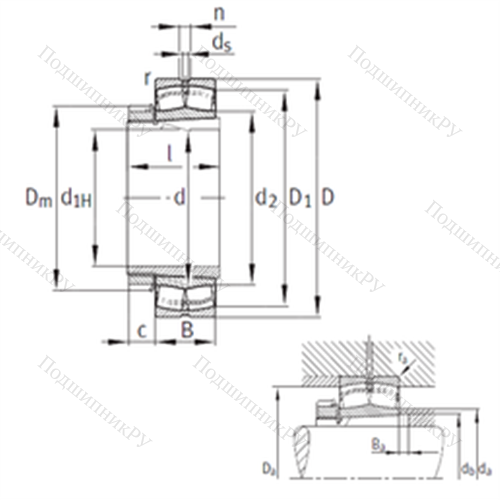 Подшипник роликовый радиальный самоцентрирующийся 22338-K-MB+H2338 предназначен, главным образом, для эксплуатации в условиях аксиальных воздействий. Существуют варианты в однорядном и двухрядном исполнении. В первом случае неразъемная конструкция закрепляется при помощи втулок и включает бочкообразные роликоподшипники, сепаратор, толстостенную внешнюю обойму сферической формы и внутреннее широкое кольцо с бортиками, в котором иногда располагается посадочное гнездо под цилиндрическую или коническую посадочную основу. Второй тип имеет двухрядный набор тел качения и способен к восприятию как аксиальных, так и осевых нагрузок.