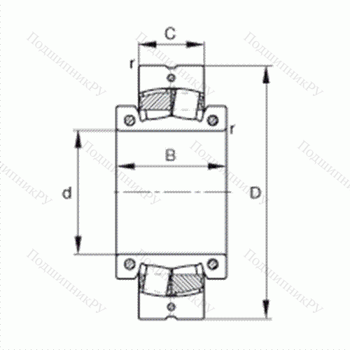 - 23136K / Условное обозначение, двухрядный радиальный сферический роликоподшипник, неразъемный