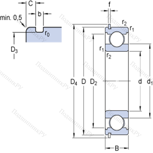 Однорядные радиальные шарикоподшипники с канавкой под стопорное кольцо 6305 NR