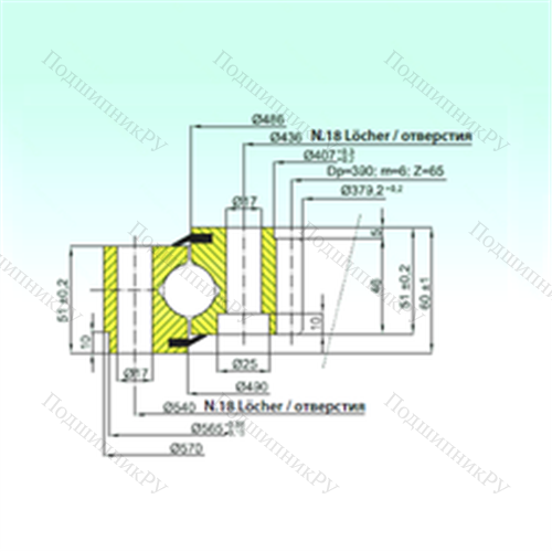 Подшипник шариковый опорно-поворотный ZB 1.25.0488.200-2SPPN
