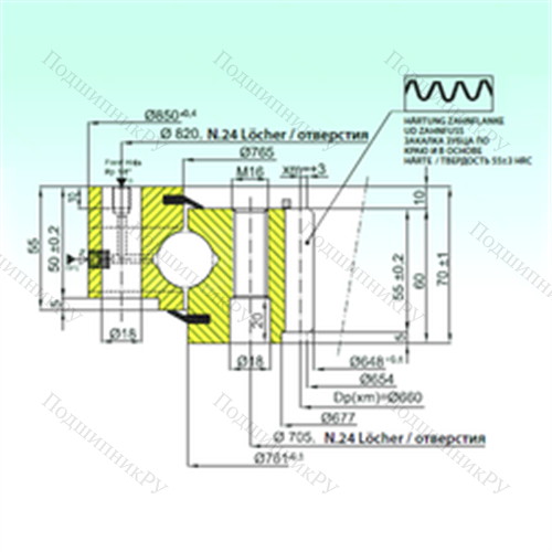 Подшипник шариковый опорно-поворотный ZB 1.25.0763.202-1RPTN