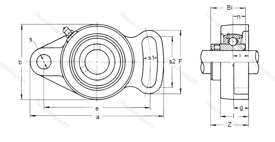 Наружная поверхность конструкции имеет сферическую форму, внутри которой удерживается однорядный радиальный шариковый подшипник. Внутреннее кольцо – расширенное, с дополнительными уплотнениями и винтом для установки.