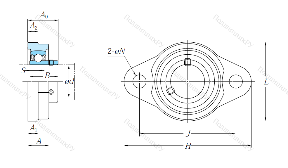 Ромбовидный корпус устройства предназначен для установки с использованием пары болтов в ограниченных пространствах. В зависимости от конкретной конструкции, может оснащаться внутренней обоймой со специальной закрепительной втулкой или стопорным винтом. В модели корпус изготавливается из стали, чугуна или иных материалов.