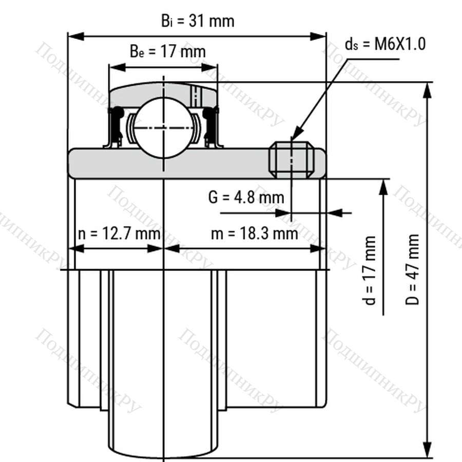 Подшипник из нержавеющей стали SS-UC203 может быть легко прикреплен к валу с помощью резьбовых штифтов или вставлена в корпус. Он подходит для радиальных нагрузок и устойчив к коррозии. Основные размеры согласно DIN 626-1.