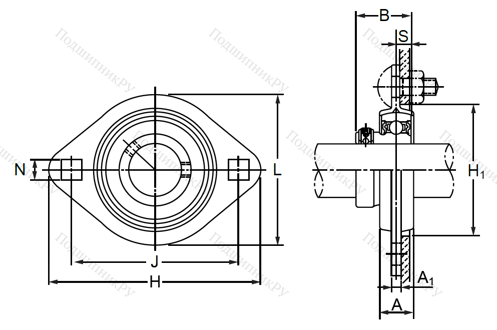 Фланцевая подшипниковая конструкция овальной формы, выполненная из стали методом штамповки. Различные модели, в зависимости от производителя, могут обладать метрическими либо дюймовыми размерными параметрами. Корпус состоит из двух одинаковых частей, удерживающих между собой шарикоподшипник.