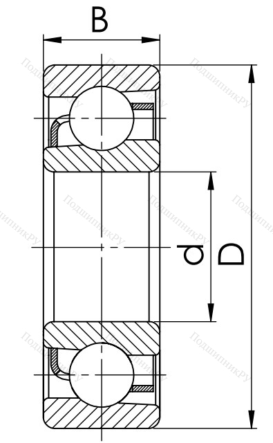 Это однорядный шарикоподшипник. Благодаря неразъемному исполнению выделяется надежностью, более низкой ценой по сравнению с разъемными. Угол контакта α=26°. Изделие воспринимает нагрузку вдоль оси до 150% от неиспользованной радиальной. Стальной сепаратор позволяет эксплуатировать узел в при рабочей температуре порядка +200° С.